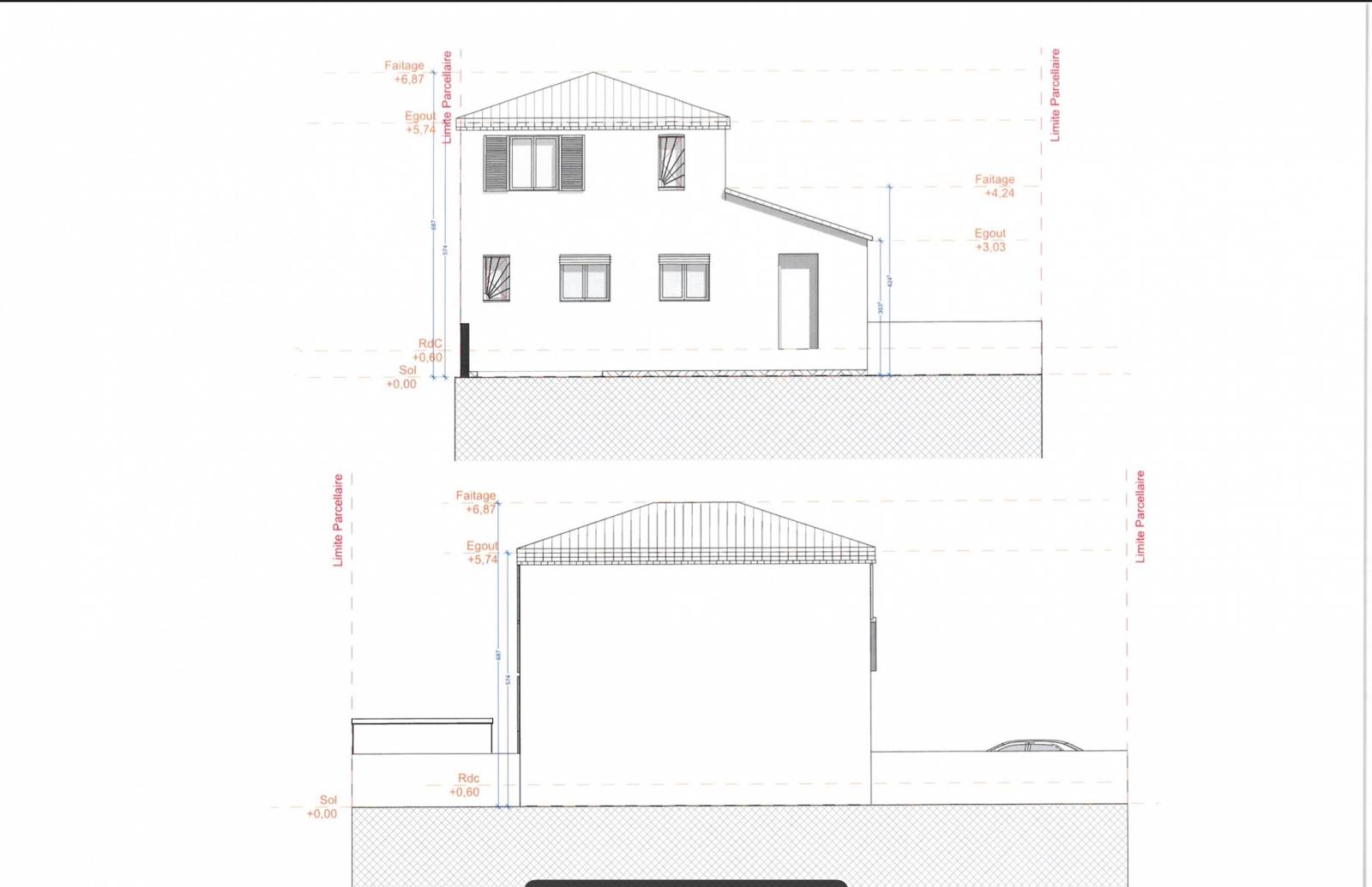 En cinquième position, les plans de façades et des toitures pour apprécier l'extérieur de la construction et ses hauteurs.