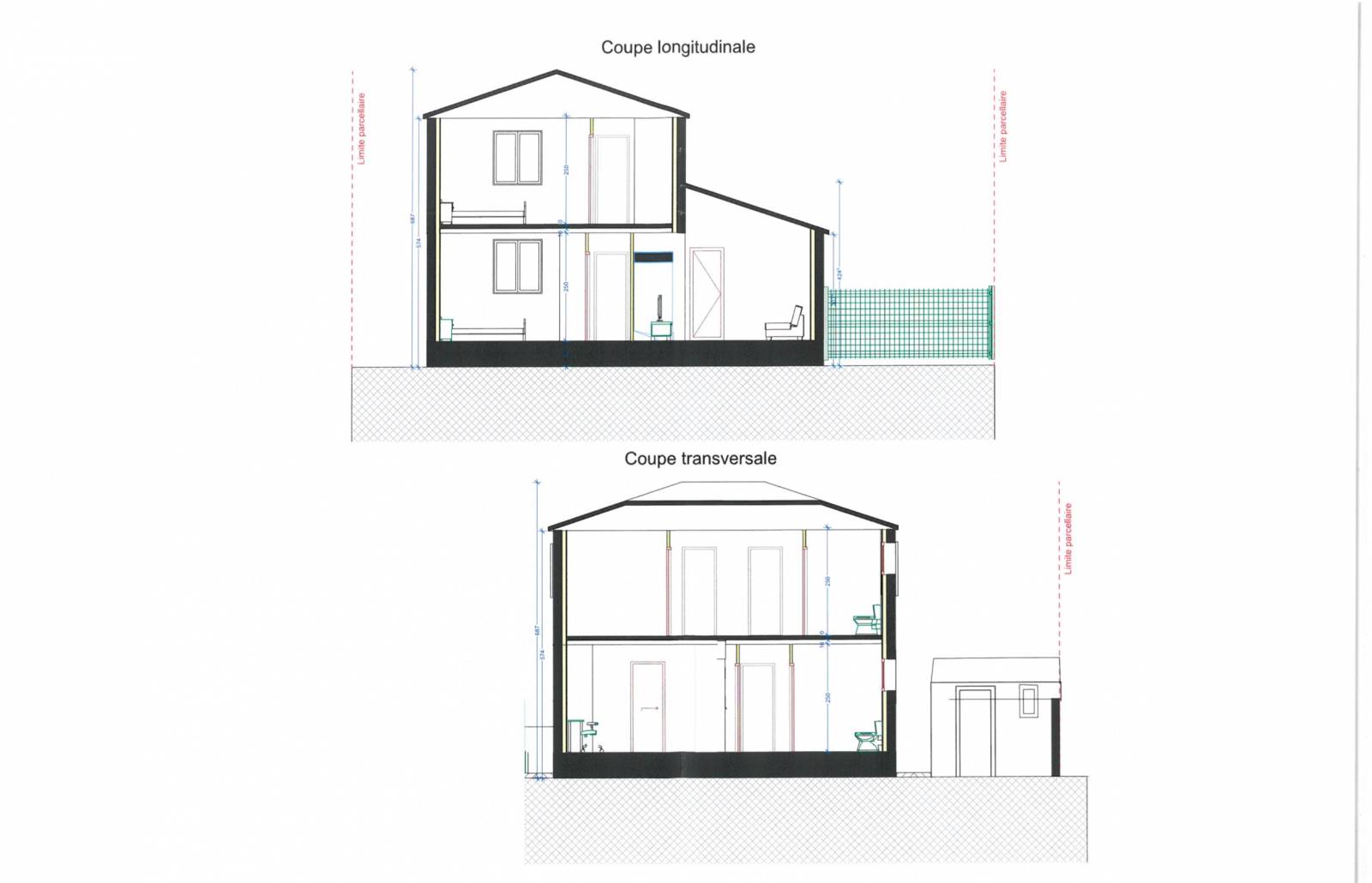 Ensuite, le plan de coupe, permettant de montrer le profil du terrain ainsi que le volume extérieur de la construction.