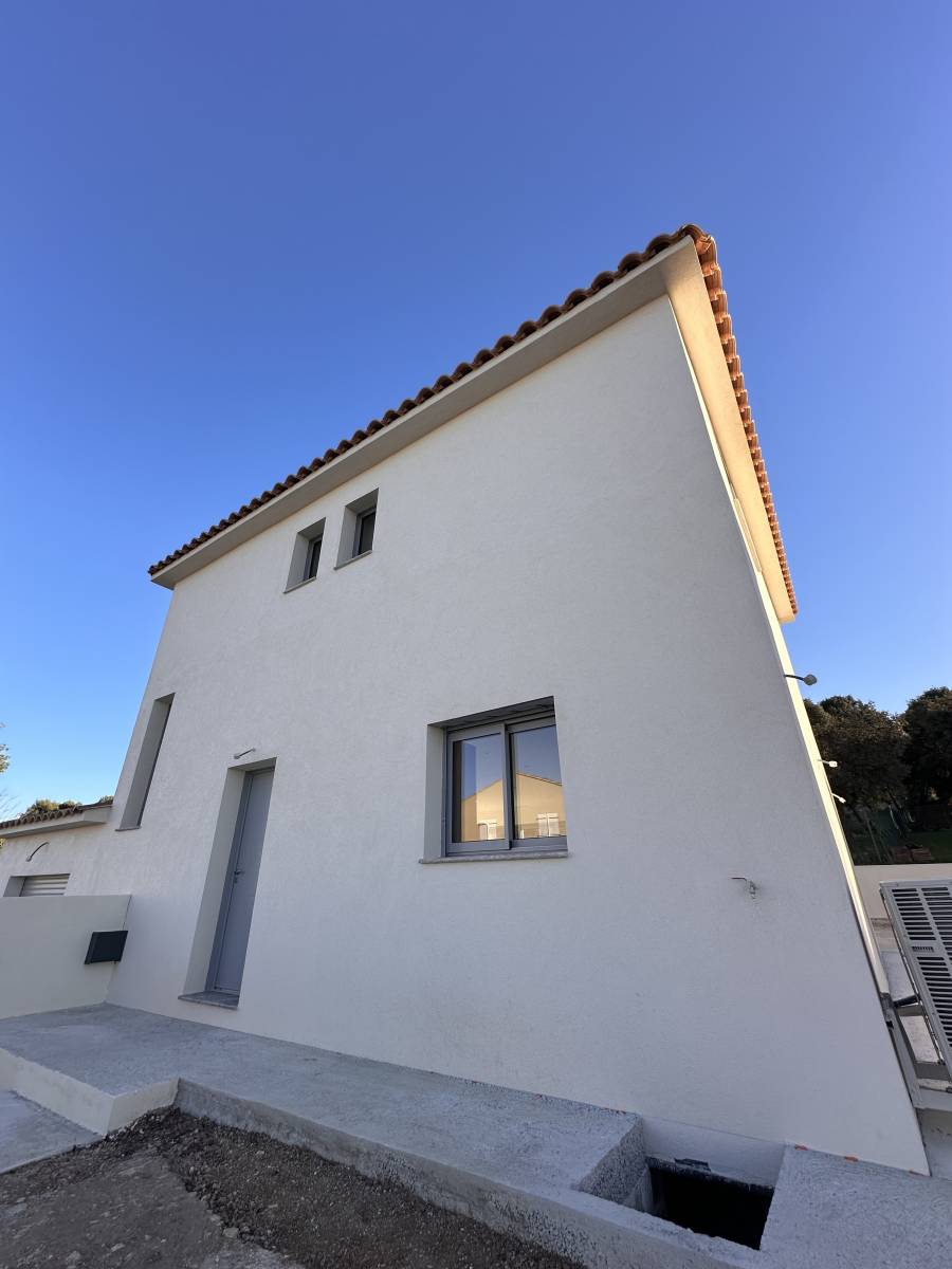 Dotée de menuiseries grises élégantes et d’un débordement béton raffiné, cette maison se distingue par son esthétique contemporaine et son excellent niveau de finition.